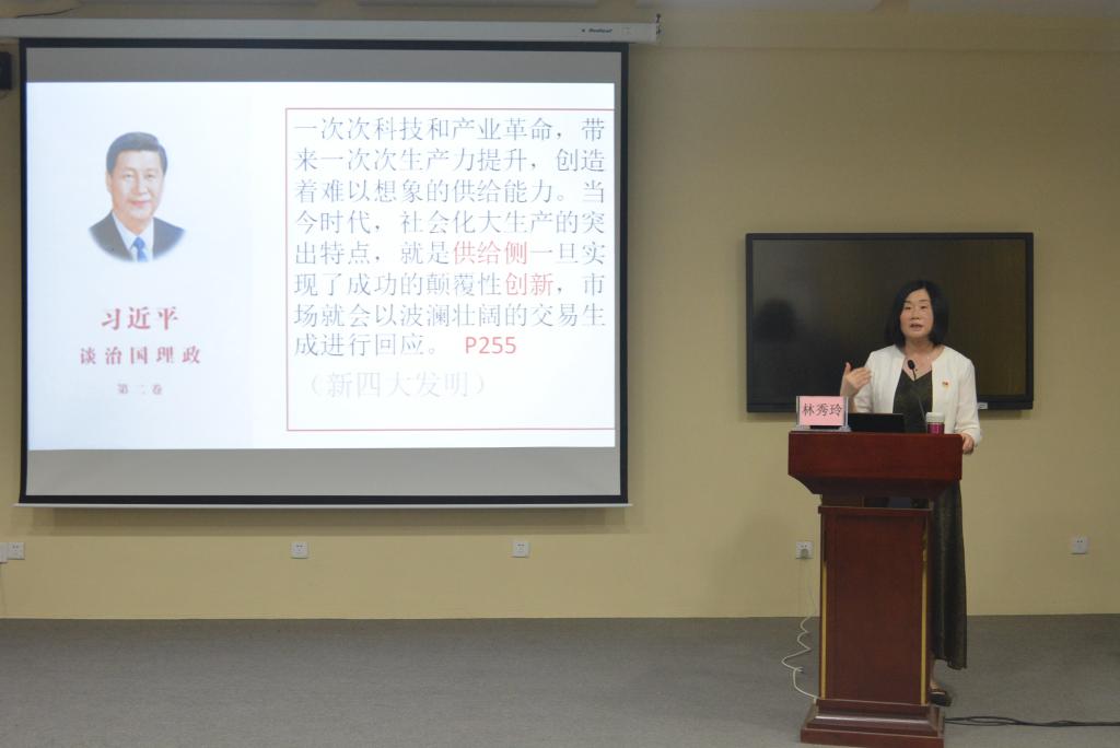 为全面贯彻党的十九大精神,以习近平新时代中国特色社会主义思想为指导,深入贯彻习近平总书记重要讲话精神,5月31日下午,mg4355官网在教学楼AT22会议室举办“新时代、新考卷、新作为——学习习近平总书记重要讲话精神”专题报告会。报告会由学校宣传统战部部长林秀玲主讲。全校各级团干部、学生干部100多人聆听报告。
