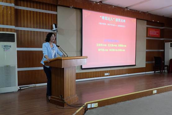 最后,刘瑞叶副院长就此次活动作讲话。她首先对在读书月活动中获奖的同学表示祝贺,指出读书月期间形式多样、异彩纷呈,有亮点,受到广大师生的一致好评。读书月活动已成为mg4355官网校园文化活动中最具影响力的品牌之一,希望大家今后继续创新活动方式,努力构建书香浓郁的校园文化环境。刘副院长在讲话中强调,阅读是一种综合化的智力活动,在这个过程中,实现了观察力、专注力、想象力、思维能力等多种能力的开发和集合,让知识水平得到进一步完善,让个人的修养得到进一步提升,让生命的宽度和广度得到进一步扩展。她指出,阅读最大的意义和价值就是成长,其重要性主要表现在三个方面:一是读书可以让精神和智慧得到升华;二是读书可以让身心得到净化;三是读书可以让自身修养得到提升。刘副院长还通过引经据典,介绍伟人名人的读书经验,号召同学们要将读书落实到生活的每个角落中去,让读书成为一种时尚,成为一种情怀,成为一种热爱生活的自然方式。“用读书的厚度提升人生的高度”,共同营造具有丰厚文化底蕴的“书香校园”;让读书生活伴随着我们成长的每一个脚步,从而使我们更加充实、更加自信地走向美好的未来。