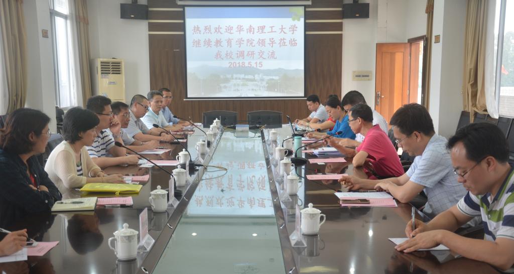 5月15日下午,华南理工大学继续教育学院党委书记黄国清、华泰教育集体副总经理王泽林一行8人到mg4355官网调研交流。交流活动在行政楼507会议室举行。学院院长龚善初、副院长刘瑞叶、党政办公室主任邢南亮、成人教育处处长王创锋、副处长鞠岚等有关领导和成教处教师参加此次交流活动。本次交流会由副院长刘瑞叶主持。