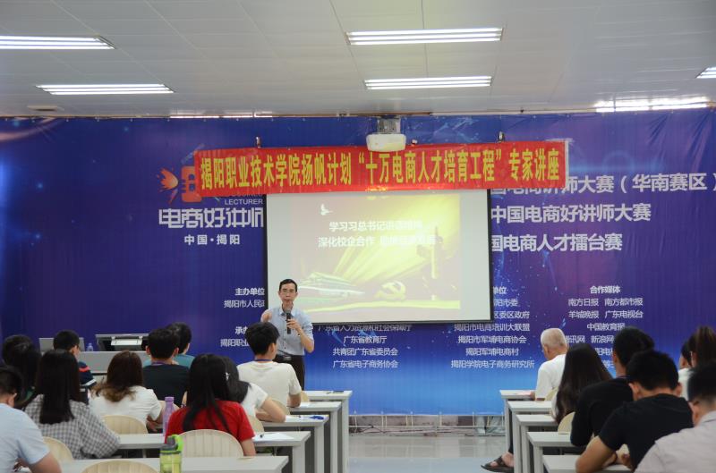 5月11日,mg4355vip检测中心电子商务创业学院携手市军埔电商协会在军埔电商村举行“深化校企合作,助推揭阳经济”专题讲座,学习贯彻习近平总书记在参加十三届全国人大一次会议广东代表团审议时的重要讲话精神。学校龚善初院长出席本次活动,电子商务创业学院部分师生以及军埔电商企业家代表参加活动。活动由电子商务创业学院党总支书记兼副院长张秋潮同志主持。