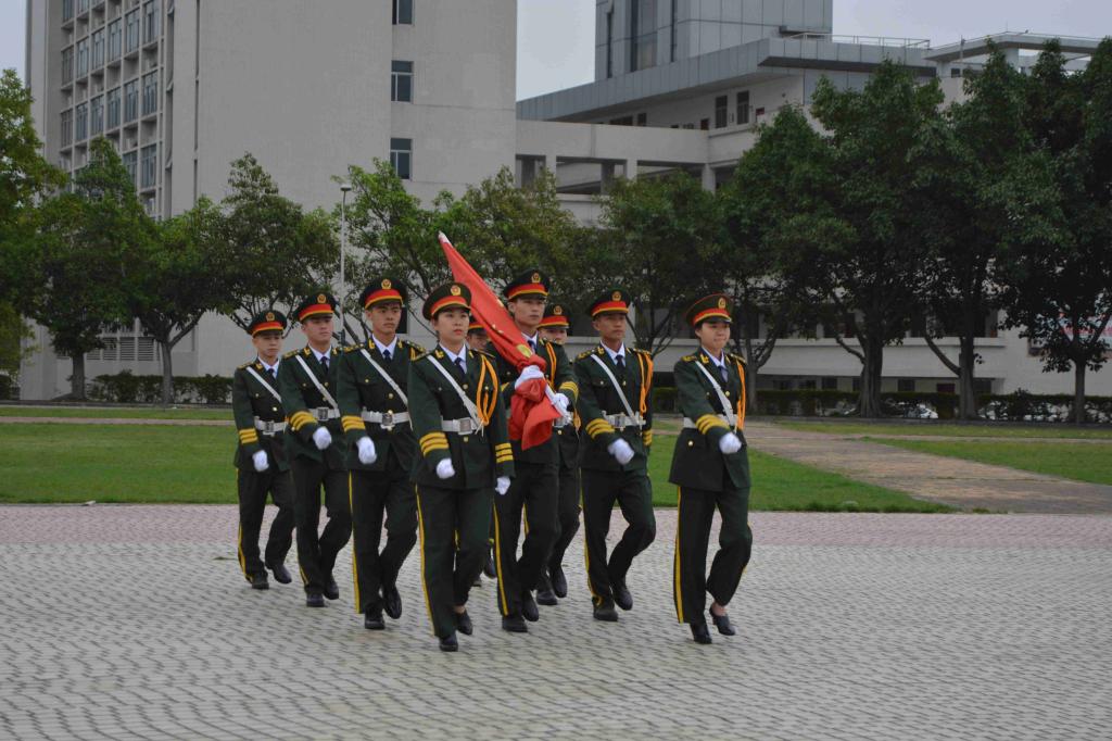 清晨,国旗护卫队队员迈着铿锵有力的步伐,英姿飒爽地走向国旗台,随着《义勇军进行曲》的旋律奏响,升旗手振臂一挥,鲜红的五星红旗迎风飘扬,伴着台下学生的行礼注目,国旗冉冉升起。