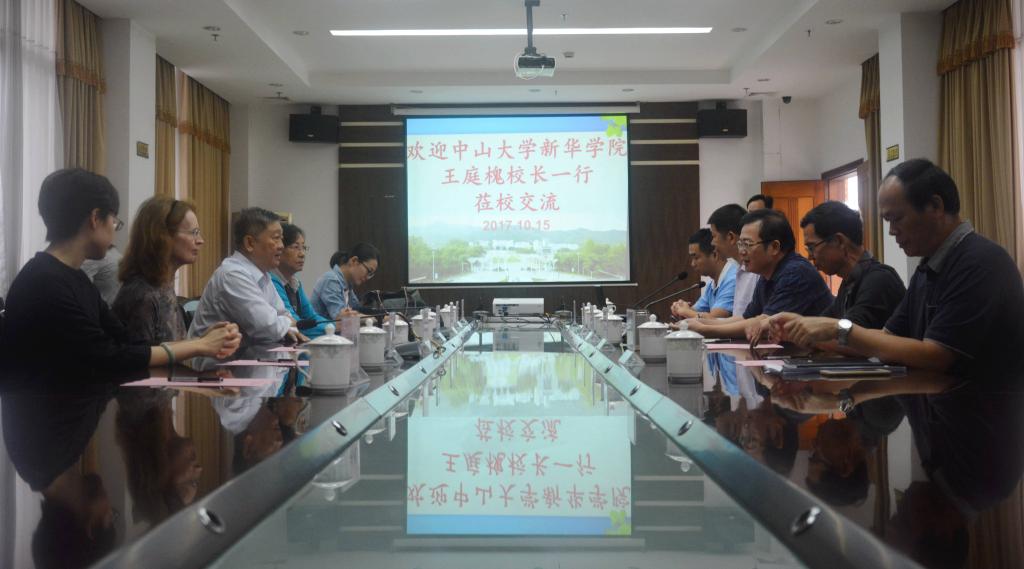 10月16日上午,中山大学新华学院王庭槐校长一行7人莅临mg4355官网走访交流,受到学校党委书记李文升、院长龚善初的热情接待,党政办公室、教务处、电商学院有关同志陪同交流。