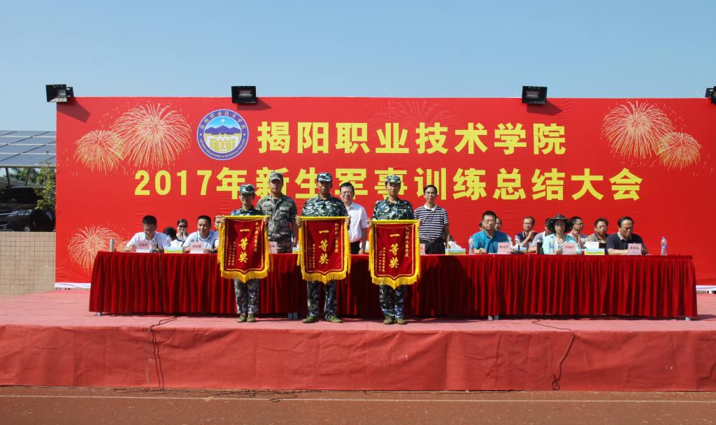 9月28日上午,我院举行2017级新生军训会操表演暨总结大会。院党委书记李文升,院长龚善初,院党委副书记姚玉平,副院长李桂鑫、刘瑞叶,梅州市梅县区国防教育训练基地教官队长黄育坤以及学院教务处、学生工作处负责人、各系部院负责人等出席活动,共同见证新生军训的成果。大会由学生工作处处长王烁生主持。