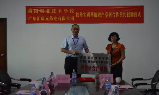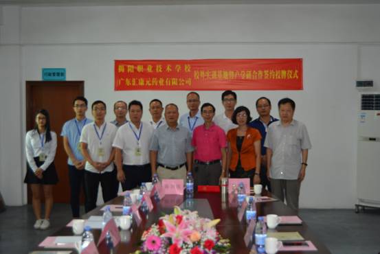 9月13日下午,我院在广东汇康元药业有限公司举行校外实训基地暨产学研合作签约授牌仪式。龚善初院长、刘瑞叶副院长、实训中心李玉庆副主任、生物工程系向亚林副主任、药学教研室吴漫晔主任,汇康元公司陈剑伟总经理、魏希敏副总经理等参加了本次活动。