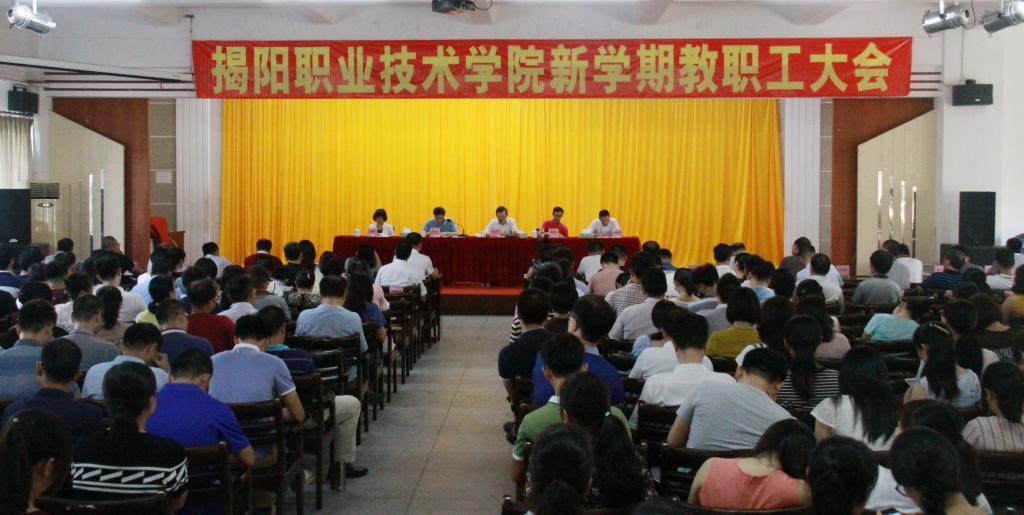 龚善初院长作了题为《开拓创新,务实奋进,开创高水平学院建设新局面》的讲话。他对2017上半年年工作作了回顾和总结:一、顺利召开第一次党员大会。二、加强内涵建设,提升教育教学质量。三、强化学生管理,全面推进学生管理工作。四、加强安全防范,全面改善校园环境。五、加强招生就业管理,全面提升竞争实力。六、强化办学条件保障,全面提升工作效能。七、加强文化建设,全面提升校园文化品位。八、发挥人才资源优势,积极开展社会服务。龚院长提出学校新学期的工作目标,并强调十八个工作重点:一、抓紧、抓实后勤各项服务保障工作。二、加强师资队伍建设。三、加大专业和课程建设的力度。四、召开教学工作会议。五、做好创新强校工程工作。六、加强制度建设。七、完善学生工作体系。八、做好内部质量保证体系诊断与改进工作。九、继续推行“双元制”培养模式。十、做好德语夜校办学工作。十一、做好电商培训工作。十二、加大数字化校园建设力度。十三、加强精神文明建设和校园文化建设,做好创文工作。十四、做好招生就业工作。十五、加大审计工作力度。十六、加强党的建设。十七、加强反腐倡廉工作。十八、加强校园安全稳定工作。